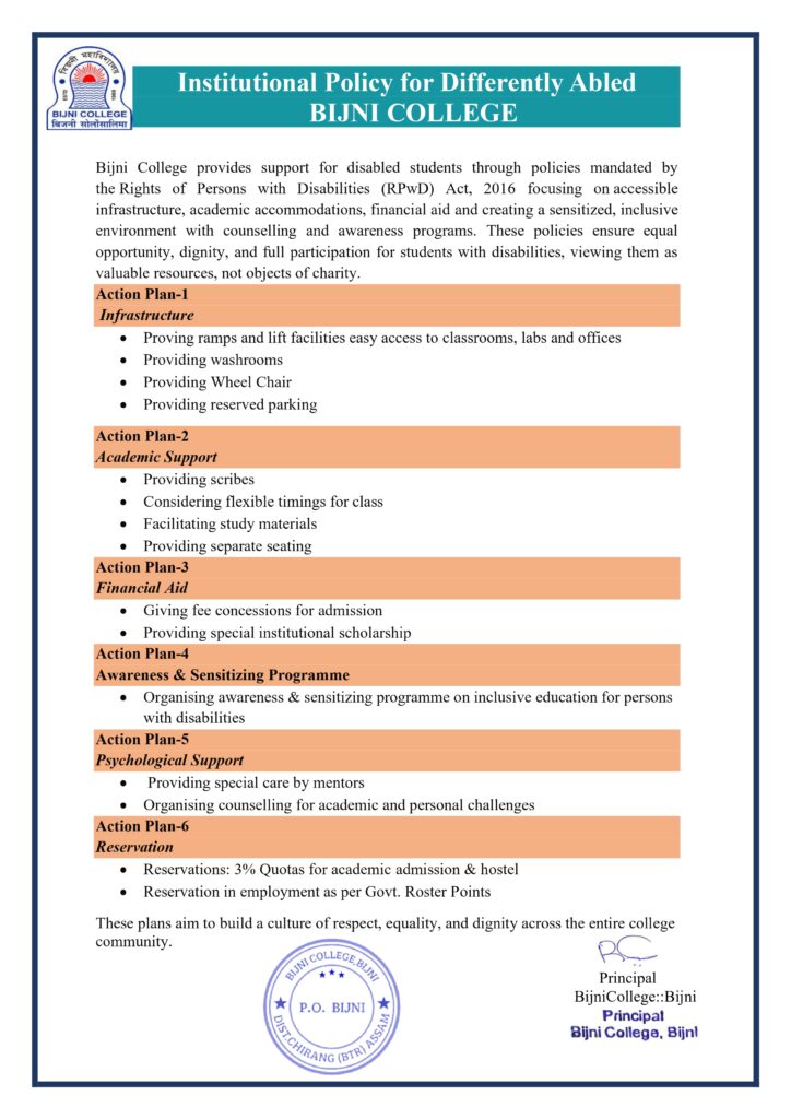 POLICY DOCUMENT ON THE FACILITY OF DIFFERENTLY ABLED STAKEHOLDERS